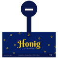 Gläsergrößen können variieren. Bitte prüfe sorgfältig, ob dieses Etikett auf dein Honigglas passt. Lade dafür unseren Größenleitfaden als Druckdatenblatt herunter.