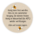 Gläsergrößen können variieren. Bitte prüfe sorgfältig, ob dieses Etikett auf dein Honigglas passt. Lade dafür unseren Größenleitfaden als Druckdatenblatt herunter.