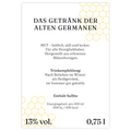 Rückenetikett für Met – Rechteckiges Rückenetikett für Honigwein in der 750ml Glasflasche aus der Designserie Charmanter Charly.