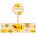 Gläsergrößen können variieren. Bitte prüfe sorgfältig, ob dieses Etikett auf dein Honigglas passt. Lade dafür unseren Größenleitfaden als Druckdatenblatt herunter.