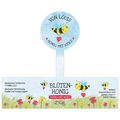Gläsergrößen können variieren. Bitte prüfe sorgfältig, ob dieses Etikett auf dein Honigglas passt. Lade dafür unseren Größenleitfaden als Druckdatenblatt herunter.